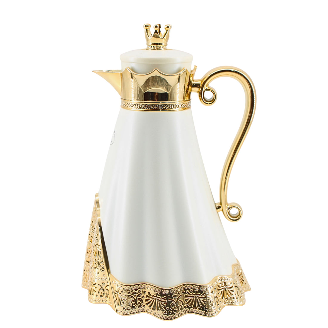 Royal Crown Arabic Coffee Vacuum Flask - White & Gold Finish (1L)